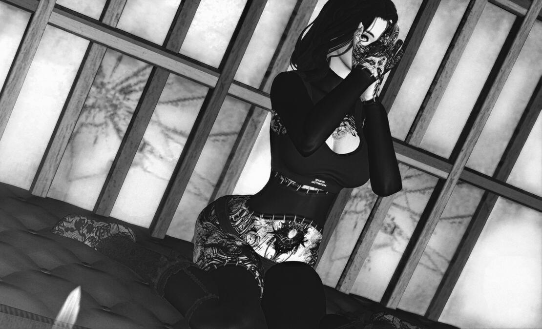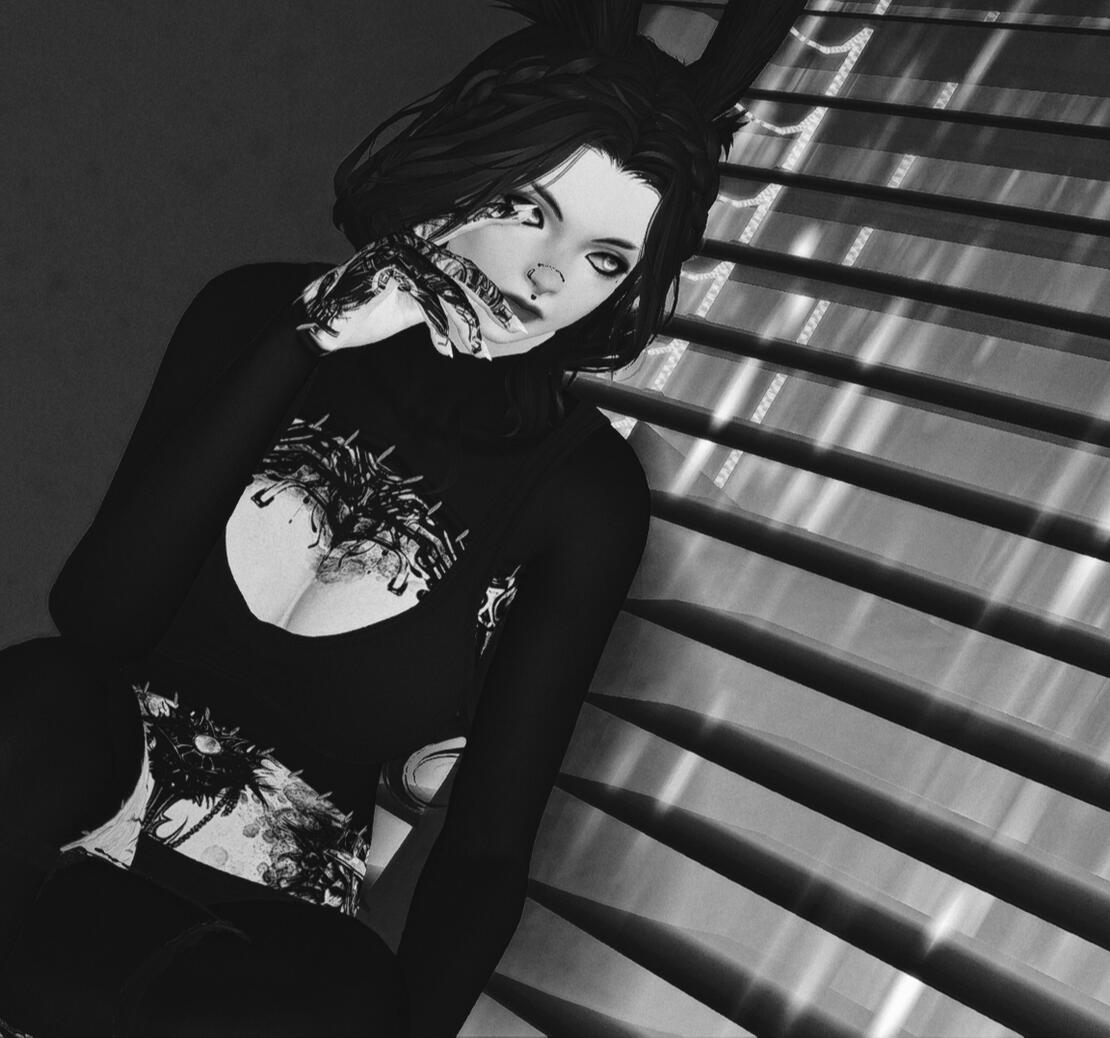 Alignment: Chaotic NeutralColors: Black, grey, and ice blue.Skills: Hunting, gathering, wilderness survival, shadow-travel, and healing.God: Menphina the Lover and Nald'thal the Trader.Element: Earth & Water (Ice)Tattoos: From her neck down, there are remnants of previous tattoos, however many of them have been seemingly covered with runes and what seems to be stitching. If one looks close enough, it is almost as if the shadows of the tattoos are swirling and moving, taking life of their own as they wrap tightly around the stitched tattoos.